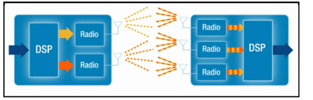 圖1:MIMO在相(xiàng)同的(de)信道(dào)上(shàσ&<ng)同時(shí)傳輸幾組信号