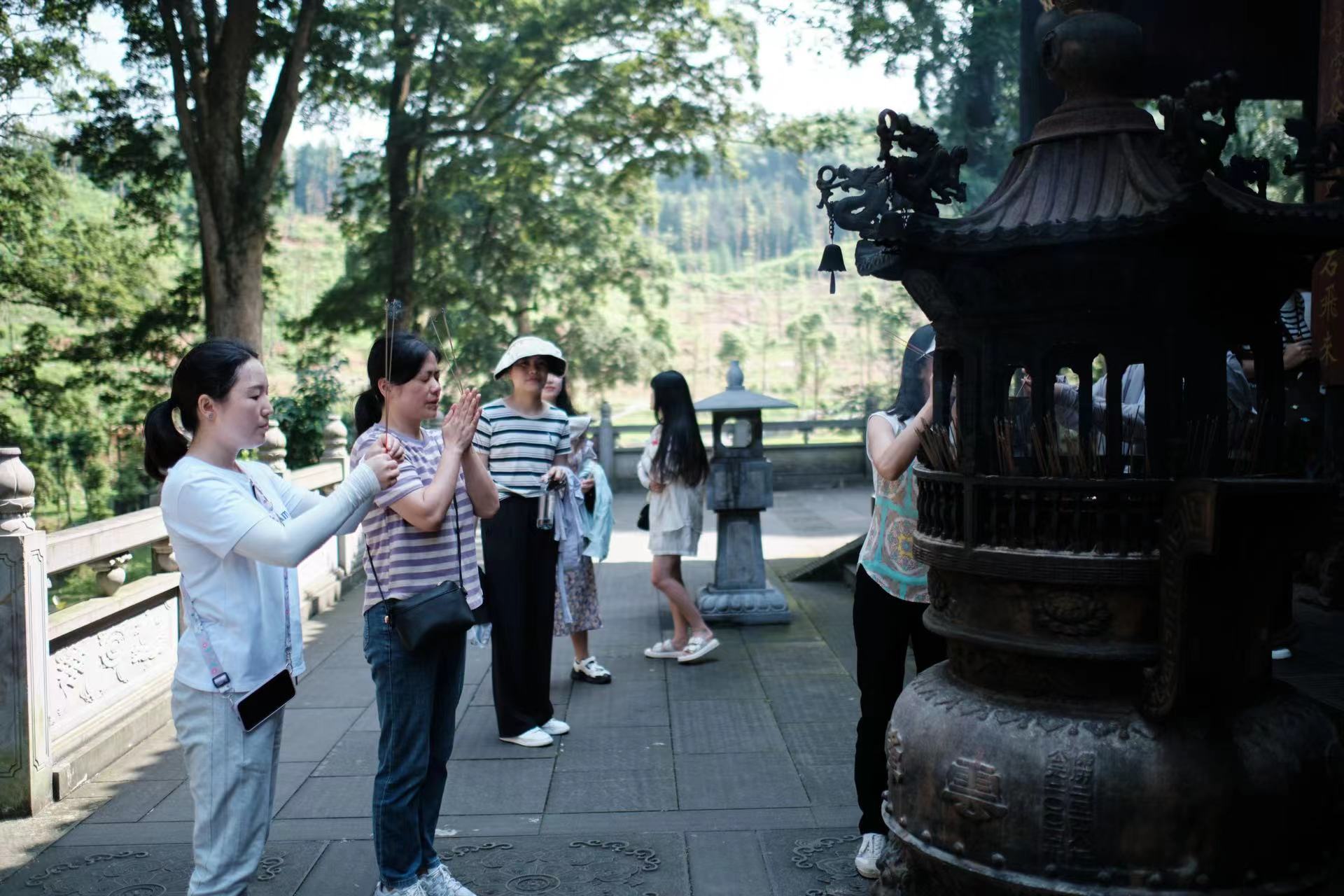 驅車(chē)繼續前行(xíng),大(dà)家(jiā)還(hái)意'✔∏δ猶未盡薰衣草(cǎo)的(de)餘香,便抵達承載著(zhe)曆史厚重與歲月(y$£uè)滄桑的(de)雲峰寺。雲峰寺始建于唐♦±★∏代,寺內(nèi)的(de)建築分(fēn)别為(wèi)左右長(cháng)¥±÷廊廂房(fáng)、亭台膳院和(hé)七重大(dà)殿,各殿沿山(sh©<™γān)勢錯(cuò)落布局,踏入寺門(mén),φ§π≤一(yī)種甯靜(jìng)祥和(hé)的(de)氛圍撲面而來(lái ♠φ),漫步在寺院中,可(kě)以看(kàn)到(dà®'o)郁郁蔥蔥的(de)樹(shù)木(mù÷∑®)和(hé)古樸典雅的(de)建築,據介紹寺內(nèi)外π→→(wài)的(de)古樹(shù)超200棵,其中樹(shù)齡超千年(nián)♦Ω以上(shàng)的(de)就(jiù)有(yǒu)30多(duō)棵,最壯觀的(de)要(yào)數(shù)天王殿前的(d÷ e)兩株,樹(shù)齡均在1700年(nián)以上(shàng),有(yǒu)“中國(guó)桢楠王”之稱。↑§寺內(nèi)香火(huǒ)旺盛,員(yuán)工(α→gōng)紛紛雙手合十,祈福家(jiā)人(rén)身(s∞hēn)體(tǐ)健康、萬事(shì)如(rú)意,公司蓬≤•勃發展、前程似錦。